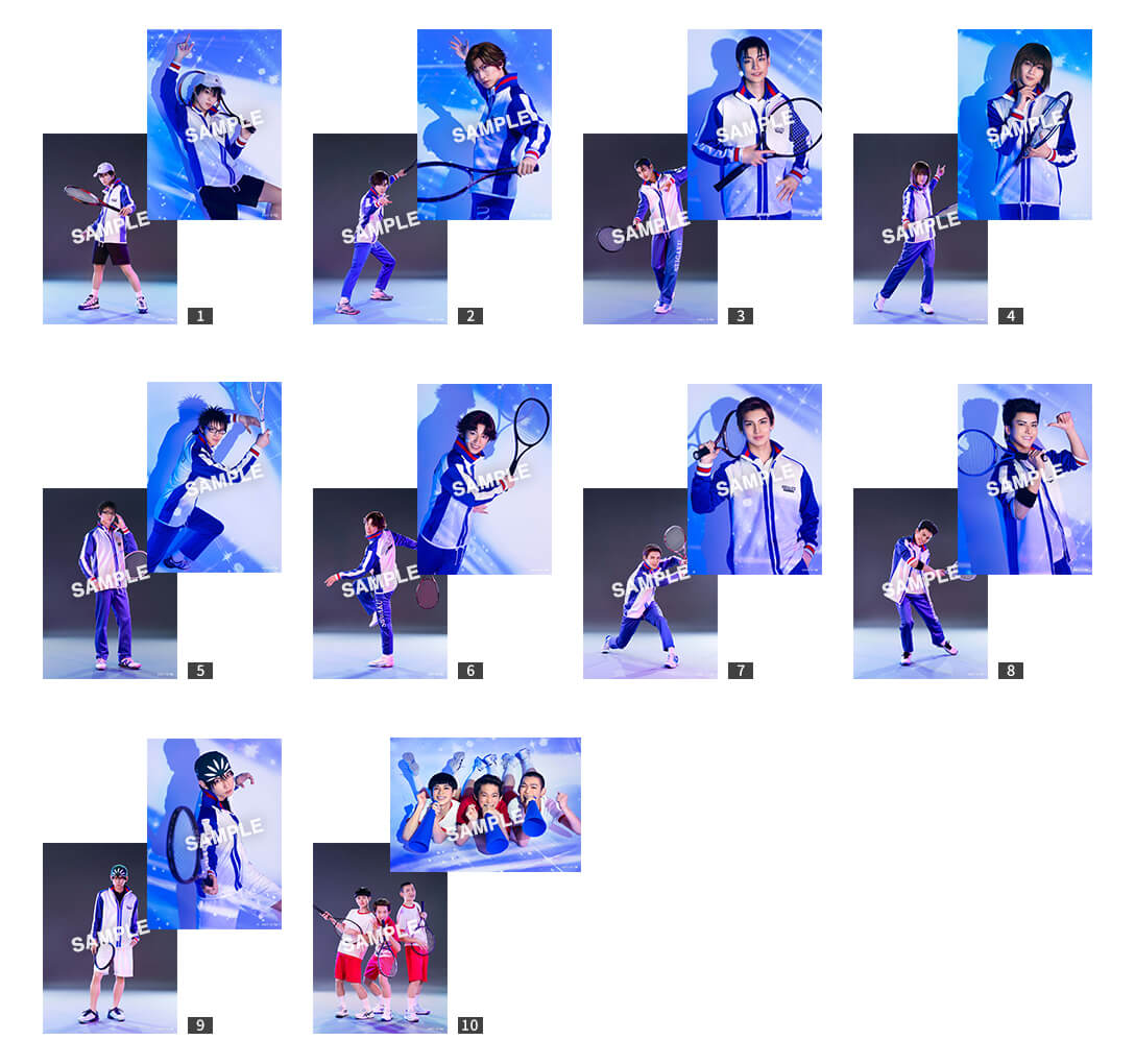 <青学>、<不動峰>、<聖ルドルフ>、<山吹>、<氷帝>、<緑山&六角>、<立海>の各種別からそれぞれランダムでの販売となります。